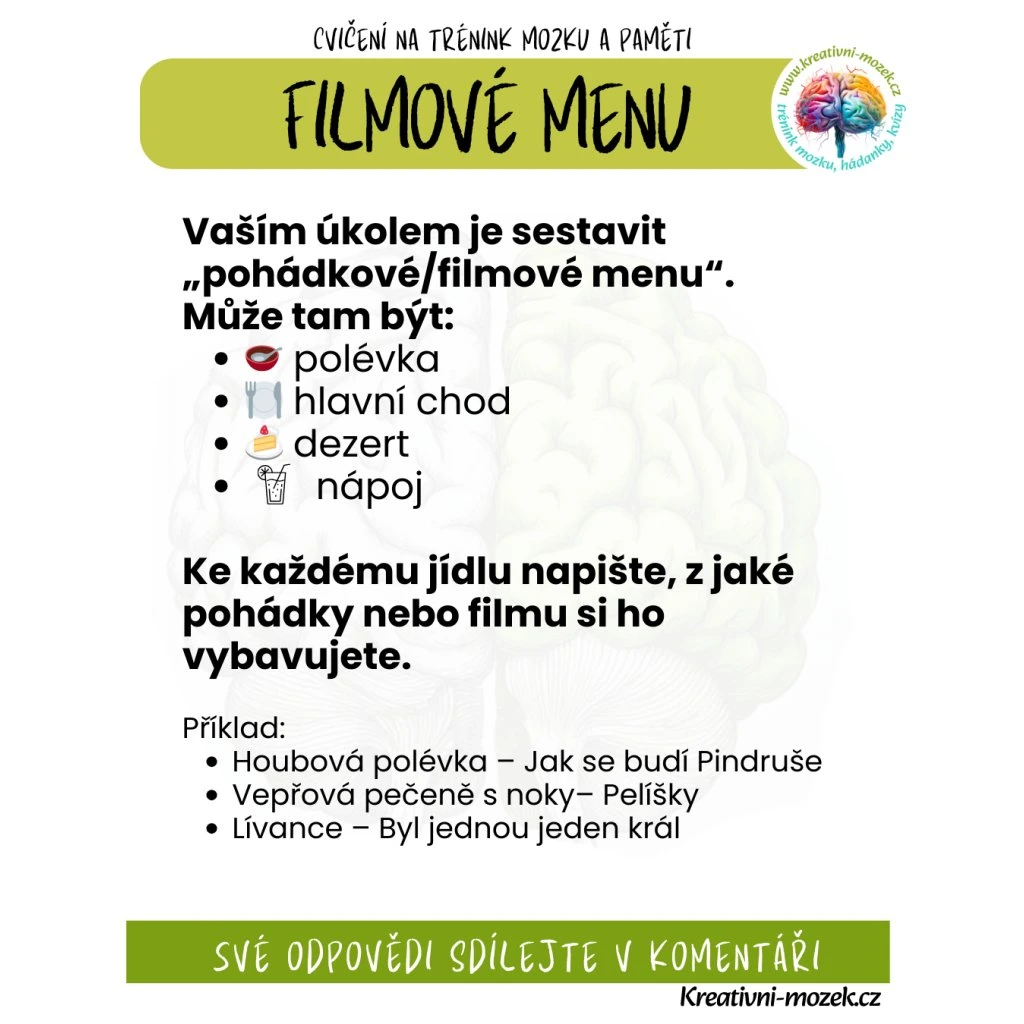 Najdete tam každý den nový úkol na procvičení mozku, paměti, logiky atp....