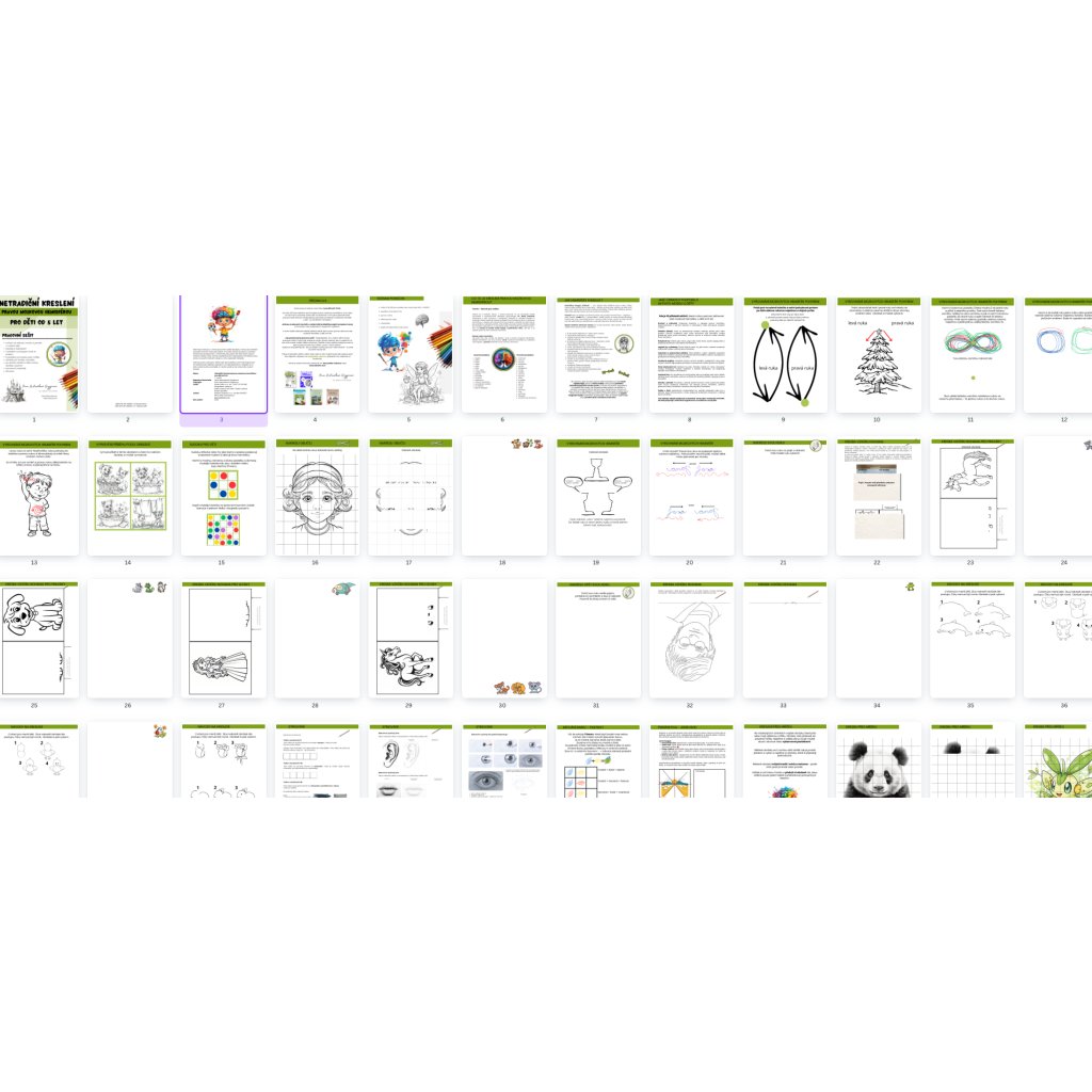 Po zakoupení a uhrazení produktu obdržíte odkaz, kde si můžete stáhnout ebook. Vytisknete si ho na černobílé tiskárně, připravíte 3 tužky, gumu a ořezávátko, pastelky a děti mohou začít kreslit.