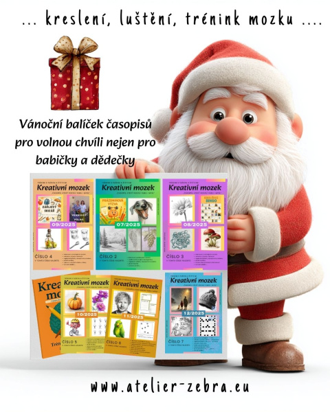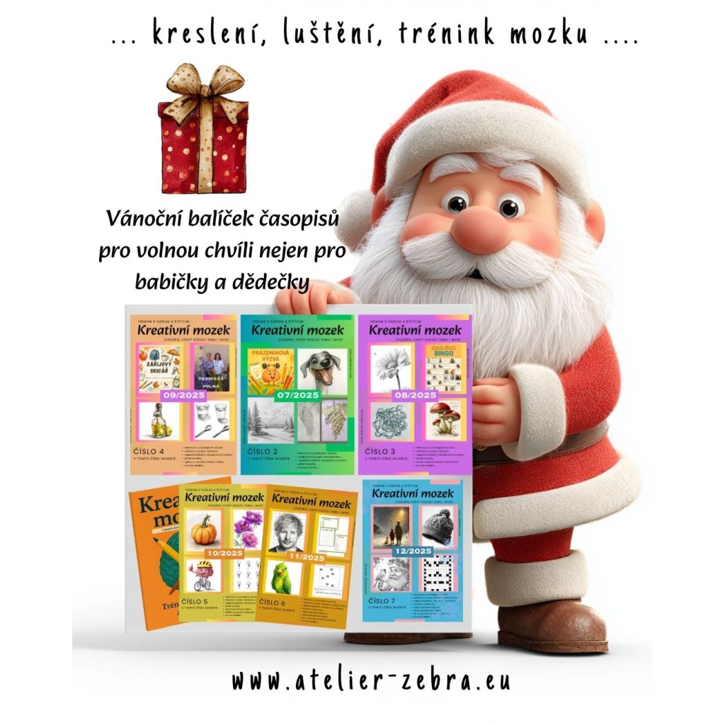 předprodej - Dárková sada - 7 tištěných časopisů Kreativní mozek (číslo 1 až 7 - tedy červen až prosinec)