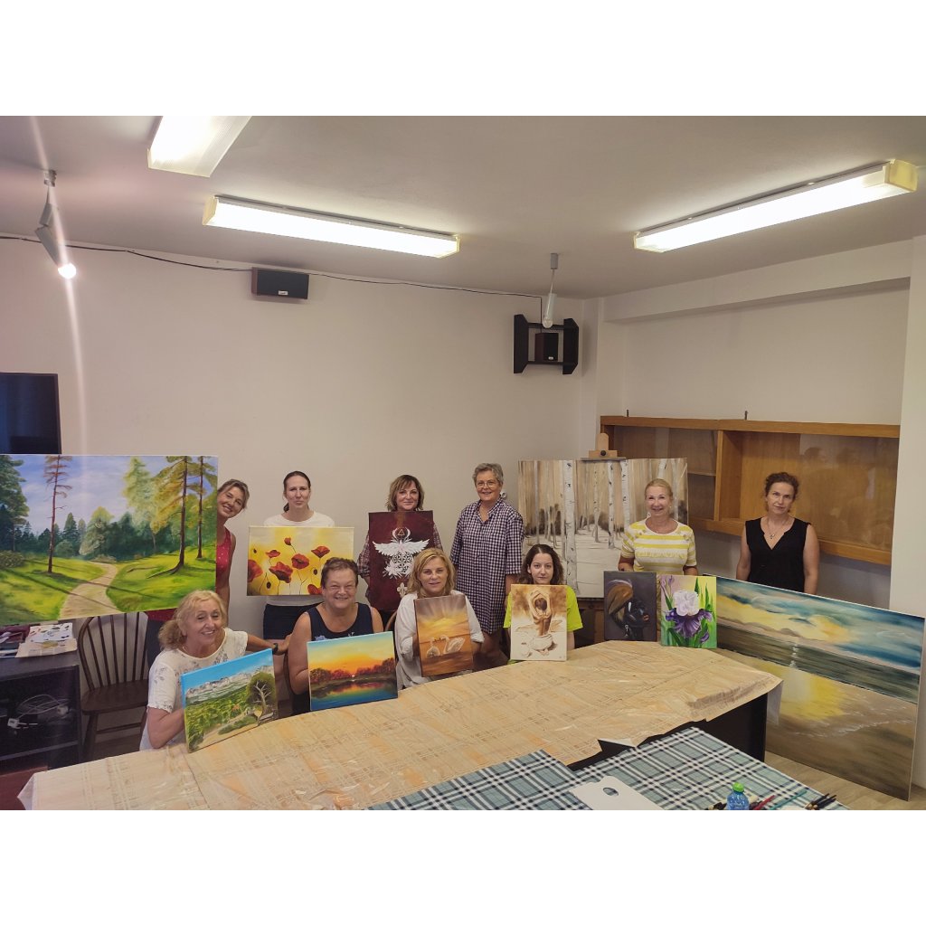Pokud je nestihnete pomalovat, cena se nesnižuje, ale můžete si domů odvézt čisté bílé plátno, které máte v ceně. (Pro představu na jednodenním kurzu běžně stihnete namalovat za cca 5 hodin jeden obraz na větší plátno - případně 2 obrazy na menší plátno).