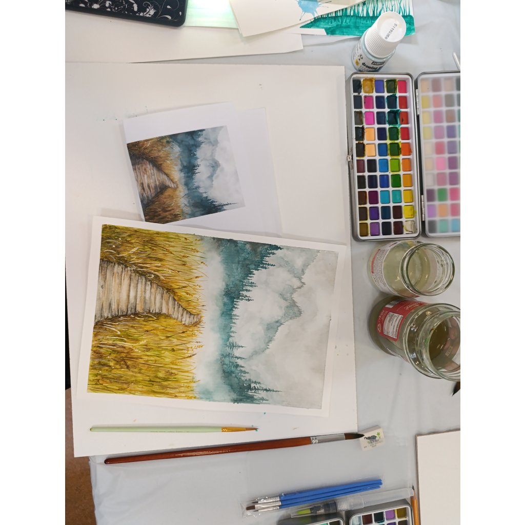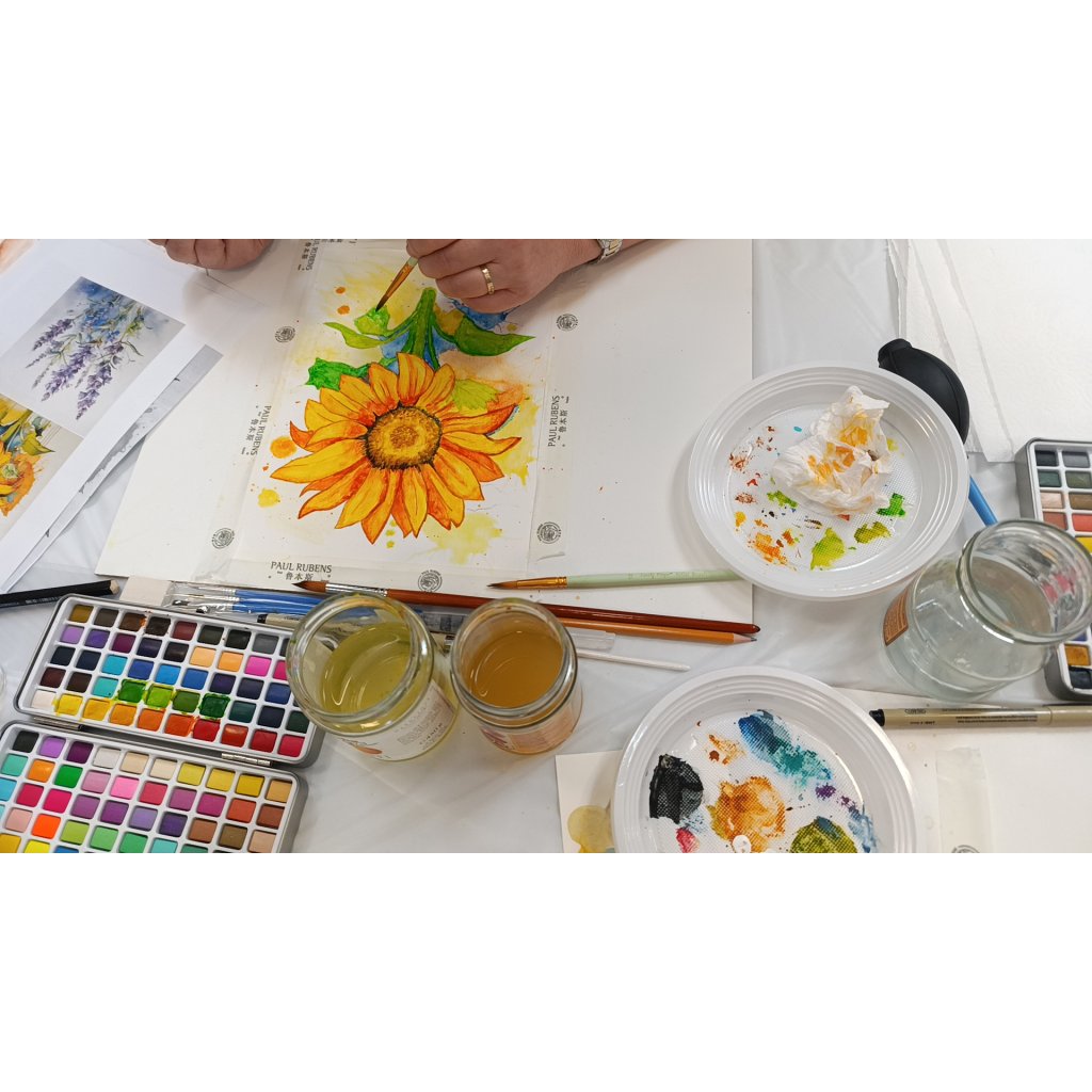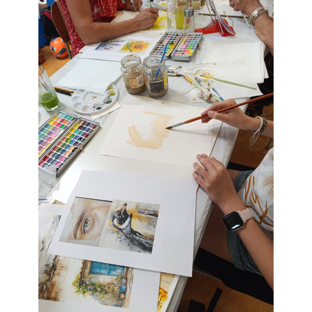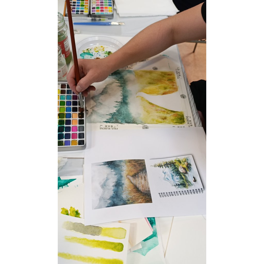 ✔ Základy akvarelu – jak správně pracovat s vodou, pigmentem a štětci.