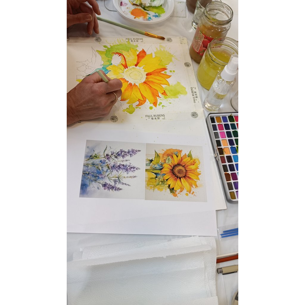 ✔ Kombinuje kontrolu i náhodu – barvy se na papíře chovají živelně, což dodává malbě přirozený šmrnc.